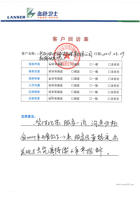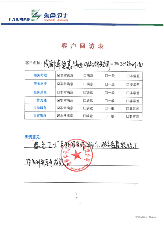 通過合作,對(duì)四害的消殺控制的很好,符合項(xiàng)目品質(zhì)要求!